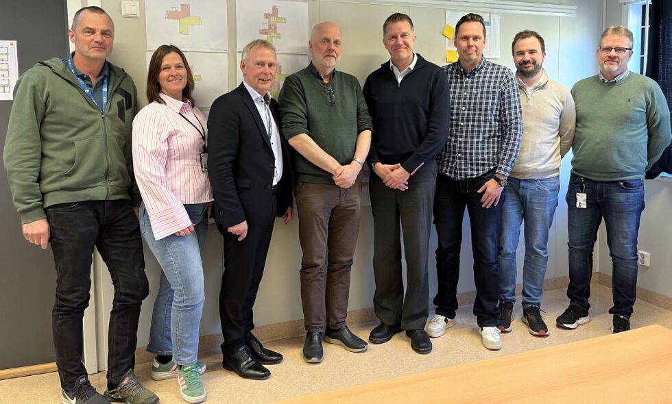 Fra venstre: Biørn Berg-Johnsen (Sykehusbygg), Line Rødal (prosjektleder Sykehusbygg), Karl Otto Jansen (prosjektdirektør Nye Aker), Dag Bøhler (programdirektør OUS), Rune Johansen (regionsdirektør GK), Henning Moen Johansen (prosjektsjef GK), Håvard Pallin Grønning (prosjektutvikler GK), Jørn Indgjerdingen (prosjektdirektør GK).