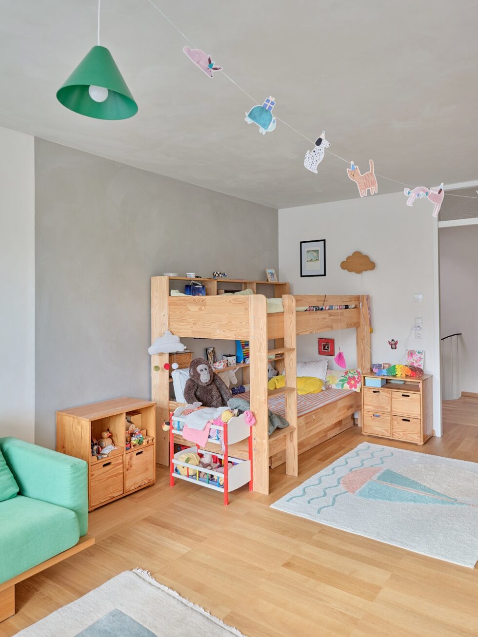 Fargepaletten er en typisk syttitallskombinasjon av dype grønnfarger, rosa, blåfarger og taktile leirpussvegger som lekent fremkaller tiåret i en lys, luftig og fargerik setting som er i samsvar med moderne livsstil.
