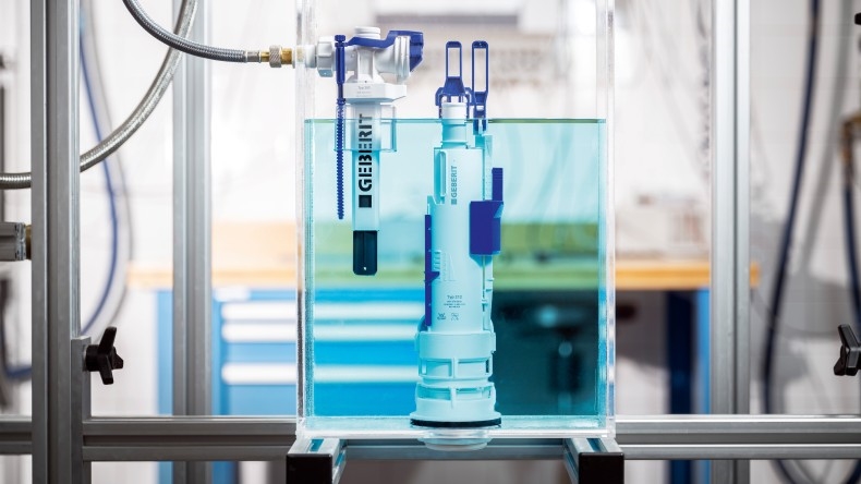 Geberit har utført akustiske tester siden midten av 1950-tallet, og fra 1968 i det som var kjent som «støylaboratoriet». I nesten tre tiår har Geberit drevet sitt eget bygningsteknologi- og akustikklaboratorium ved hovedkontoret i Sveits. Det muliggjør bygging av omfattende installasjoner i flere etasjer for akustiske og statiske tester. Mange av disse testene er strengt standardiserte – inkludert installasjonstestanlegget der Pietro Allegri måler støyen fra den nye Geberit type 383 innløpsventil.