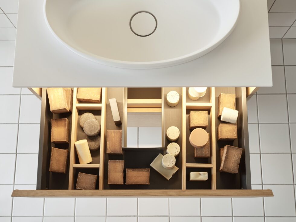 – For oss handler baderom ikke bare om funksjon, men også om følelse. Det vi ønsker å fremheve, er kombinasjonen av enkelhet og detaljer som gir varme, farge og personlighet. Den lukkede oppbevaringen hjelper deg med å holde orden, mens hyllene gir deg muligheten til å vise frem dine fineste gjenstander – det praktiske balanseres med det personlige, sier Sofie Lawett.